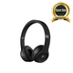 - Over-ear headphones feature soft leather ear cushions for all-day comfort
